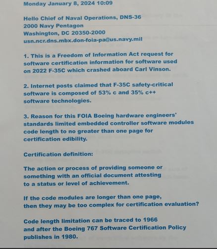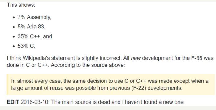 posts claimed that F-35C safety-critical software is composed of 53% c and