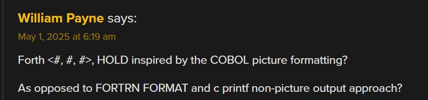 well-suited for interactive hardware interaction and development. Forth was even used
