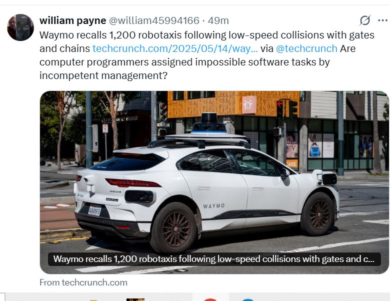 Waymo recalls 1,200 robotaxis following low-speed collisions with gates and chains.